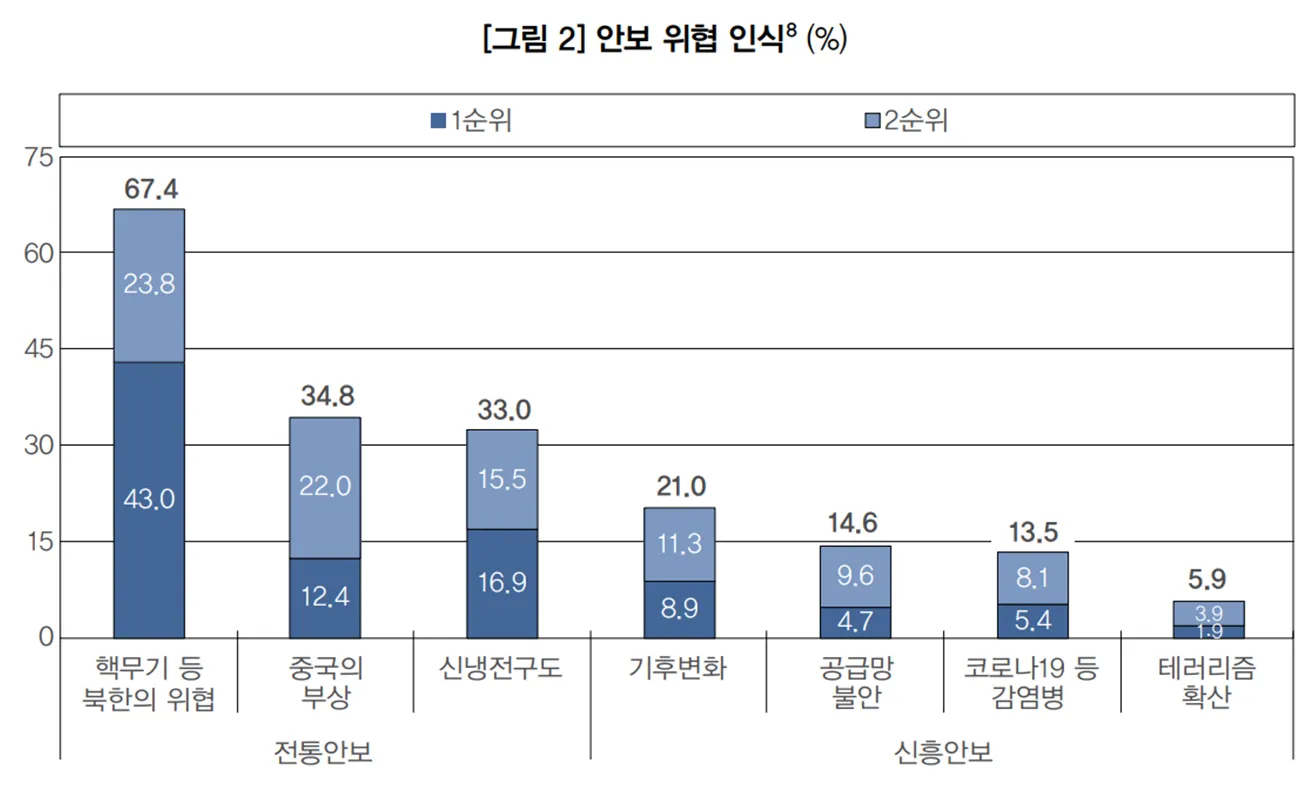 한국인이 생각하는 안보위협 (2022년 11월 여론조사/아산정책연구원)