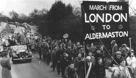 1958년 부활절 주말, 영국 런던에 약 10,000여 명의 사람들이 핵무기 반대를 외치며 모였다. 이들은 영국 정부에 핵무기 개발과 실험을 즉각 중단할 것을 촉구하며, 일방적인 군축을 요구했다. 참가자들은 4일 동안 84km를 행진해, 영국의 핵무기 연구소인 올더마스톤까지 도착하는 대규모 평화 시위를 벌였다. 이 역사적인 행진은 '올더마스톤 행진'으로 불리며, 영국과 세계 평화운동의 중요한 기폭제가 되었다.