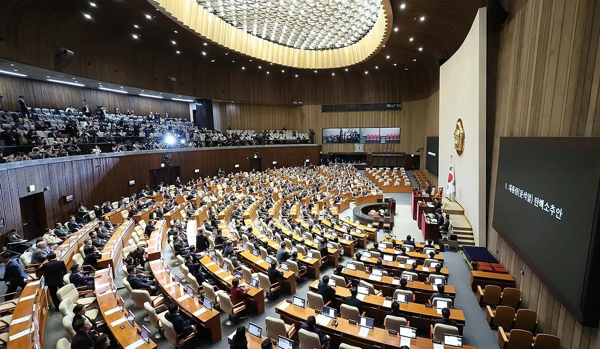 우원식 국회의장이 12월 14일 윤석열 대통령 탄핵소추안에 대한 가결을 선포하고 있다. [출처: 연합뉴스]