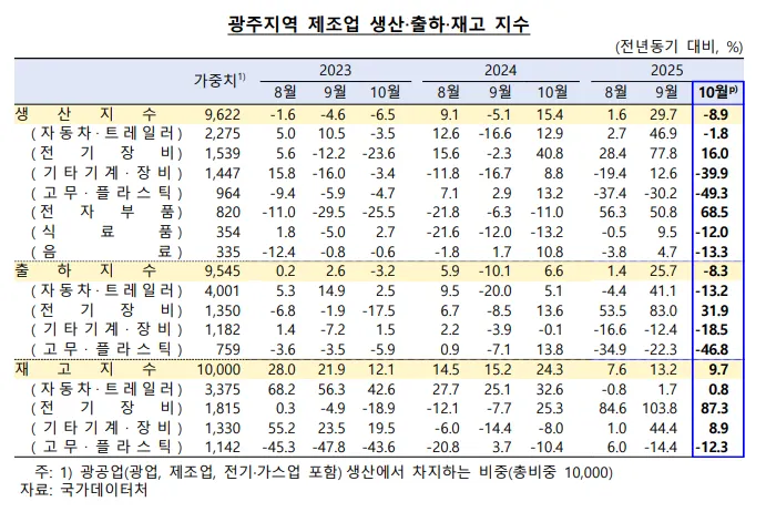 2025년 광주 : 자동차·전자 중심의 회복, 그러나 고용 악화