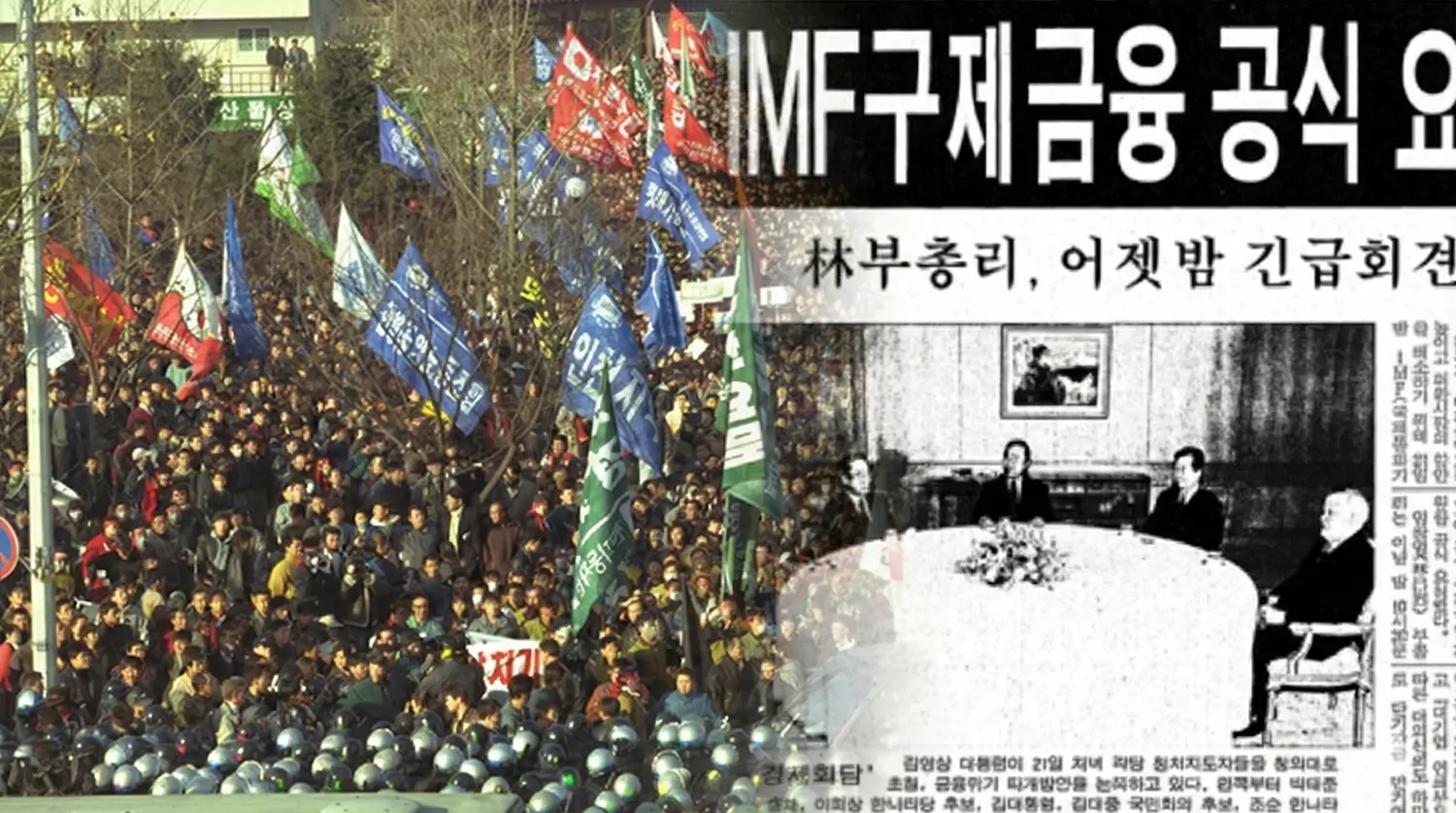 "1년 만입니다. 1996~97년 총파업으로 저지한 듯 보였던 신자유주의 노동개혁은 IMF 외환위기로 인해 1년여 만에 재추진되었습니다. 1998년 민주노총도 참여한 김대중 정부의 노사정 위원회를 통해 정리해고제, 근로자파견제가 결국 도입됐습니다. 총파업으로 막아낸 것들이 도입된 겁니다."