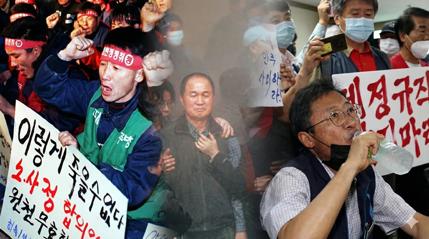 "1998년 8월, 현대자동차 노조는 36일간의 공장 점거 파업을 벌였습니다. 사측의 1,538명 해고 요구를 277명으로 축소시키는 성과를 거뒀지만, 133명의 구내식당 여성 노동자들은 전원 정리해고-외주화됐죠. 이후 자본은 전략을 바꿨습니다. 정규직 정리해고는 어렵다고 판단하고, 정규직 채용을 최소화하고 외주화, 하청화, 비정규직을 확산시켰어요. 이것이 노동시장 이중구조 고착화의 시작이었습니다."