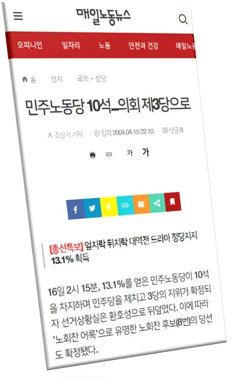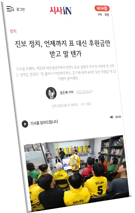 "민주노총 건설 이후, '노동자계급의 정치세력화'라기보다는 '민주노총의 정치세력화'라는 성격이 강해졌습니다. 점차 조직 노동자 중심의 협소한 대표성에 갇혔고, 2010년대 민주노총이 주도하고 진보정당도 동참한 '반보수전선'은 결국 위성정당으로 귀결됐습니다. 1998년부터 시작된 민주노총 중심의 정치세력화 운동도 한 순환이 끝난 것입니다."